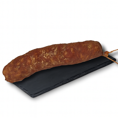 Le saucisson sec fumé est un saucisson pur porc que l’on fume au moment du sèchage, ce qui lui donne un arôme reconnaissable.Tous nos saucissons secs son sans colorant et embossés dans un boyau naturel.
